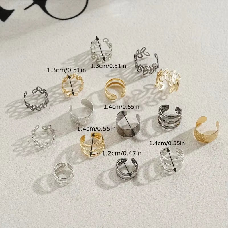 5/15 Pcs Set Of Hollow Leaf Design Clip On Earrings, Zinc Alloy Jewelry Simple Punk Style Personality Female Ear Decor
